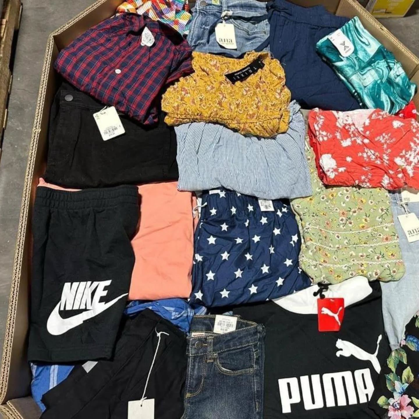 Huge selection of Items Such As: Jeans, Active Wear, Casual Wear, Dress Wear, Pants, Shirts, Tops, Denim, Bodysuits, Crop Tops, Tank Tops, Jackets, Shorts, Jumpsuits, Loungewear, Rompers, Dresses, and much more. F.O.B. Florida.