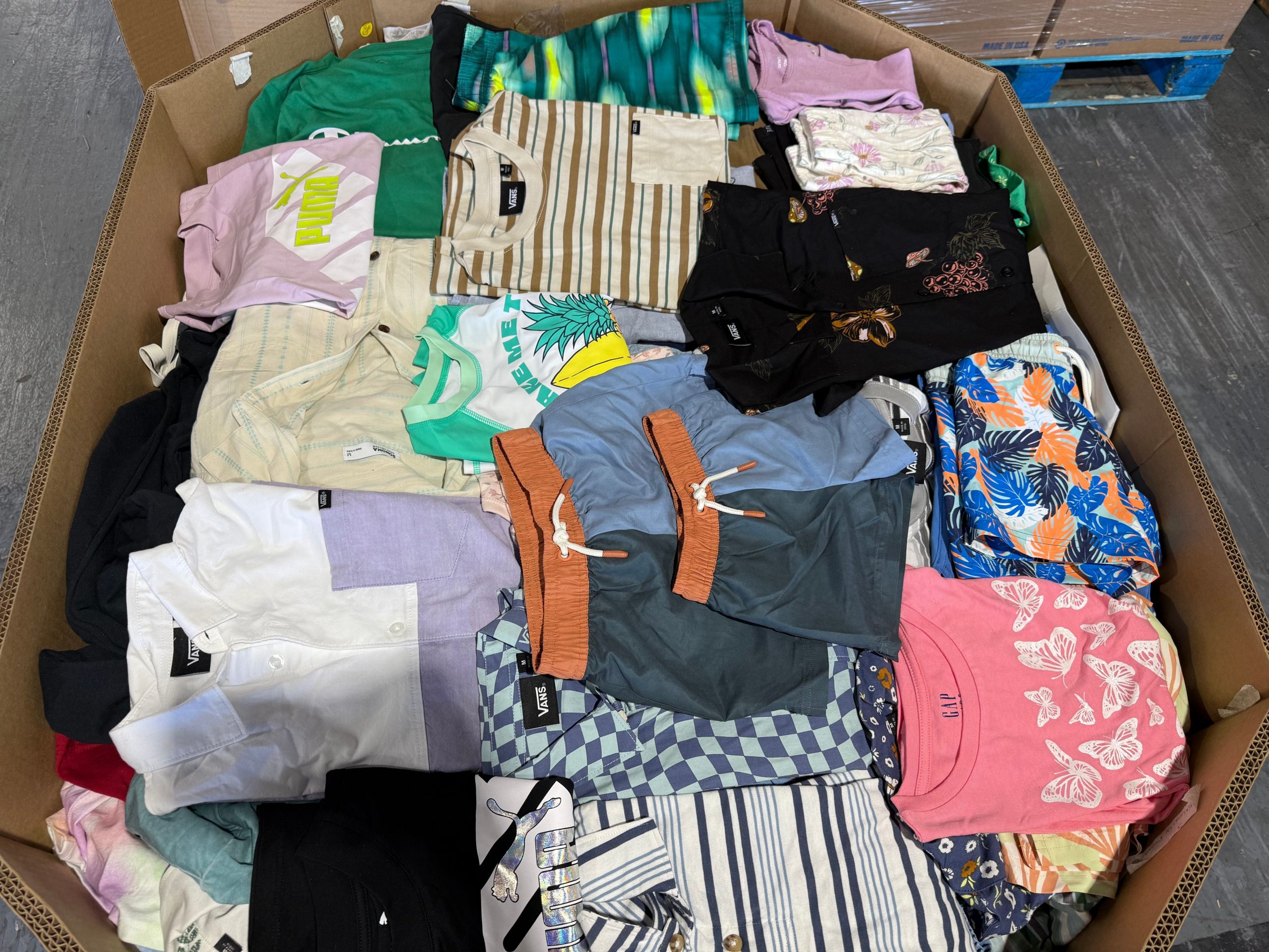 All new overstock. A mixture of Men’s Women’s and Children’s clothing. Load may contain a huge selection of shirts, pants, jackets, tops, denim, skirts and more. Each Pallet contain 1000 pieces. F.O.B. Florida. Best Deal!!! Sold by the pallet or truckload.
