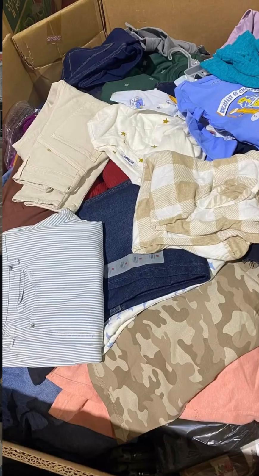 Men’s, women’s, and children’s all new clothing. May contain a Huge selection of items such as, Pants, Shirts, Tops, Denim, Bodysuits, Crop Tops, Tank Tops, Jackets, Shorts, Jumpsuits, Loungewear, Rompers, Dresses, and much more. F.O.B. Florida. Best Deal!!! Sold by the pallet or truckload.